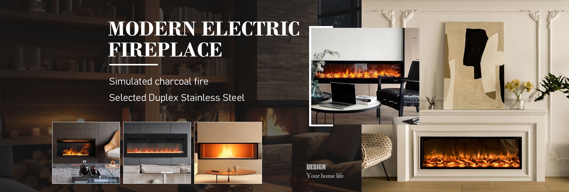 Chimenea Eléctrica de Acero Inoxidable con Diseño de Fuego de Carbón 3D Realista Integrada para Sala de Estar de Hotel Moderno, Gran Venta